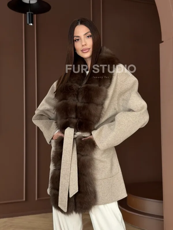 Пальто с отделкой из меха песца 102908